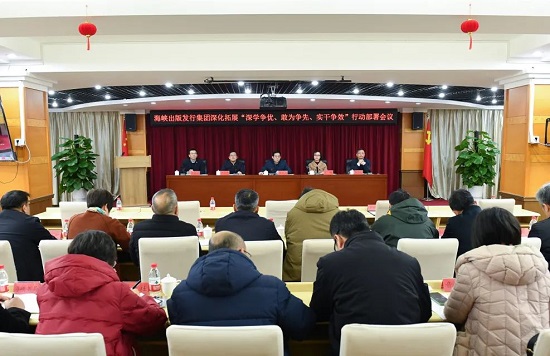 為深入貫徹落實省委深化拓展“深學爭優、敢為爭先、實干爭效”行動部署,全面貫徹落實省委宣傳部工作要求,3月1日,海峽出版發行集團召開深化拓展“深學爭優、敢為爭先、實干爭效”行動部署會議,動員廣大干部職工以滿腔的熱情、充足的勁頭投入工作之中,在奮力譜寫全面建設社會主義現代化國家福建篇章中展現新氣象、彰顯新作為。
