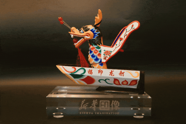 作為印刷文化的傳承與創新者,“新華印像”始終堅守“讓文化觸手可及”的初心。此次精心推出的龍舟主題文創作品,無疑是傳統非物質文化遺產與現代科技融合的創新結晶,同時也是對“福”文化內涵的深刻闡釋與創新展現。該創意作品的靈感源自深厚的“福”文化底蘊與“龍舟”競渡的拼搏精神,匠人們將傳承千年的“福”文化與國家級非物質文化遺產龍舟制作工藝的榫卯智慧巧妙融合,加上現代3D數字打印技術與福州漆藝彩繪的有機結合,使得這份承載千年歷史的“龍舟”以精準的比例和絢麗的色彩得以展現。在傳統卯榫結構的緊密咬合與光彩奪目的紋理交織中,可以感受到古今福運的和諧共鳴,傳遞著“福印龍舸 奮楫爭先”的文化意蘊,敘述著福州傳統與現代科技在“福”文化脈絡中的和諧共生。