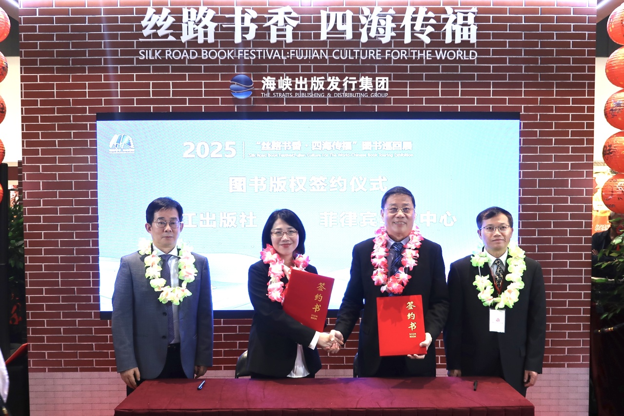 活動現場還舉行了捐贈和簽約儀式。海峽出版發行集團向中國駐菲律賓大使館、菲律賓華教中心贈送剪紙卷軸與德化瓷器,以福建非遺技藝傳遞“文化同源、友誼長存”的情誼;主辦方向菲律賓僑中學院、北黎剎育仁中學、博愛公益教育中心捐贈精品圖書;海峽出版發行集團所屬鷺江出版社、福建美術出版社分別與菲律賓華教中心簽訂圖書版權合作、“AI 藝術融合展”項目合作協議。在馬尼拉國際書展亞洲版權展,海峽出版發行集團展團還集中推介了集團重點圖書版權。