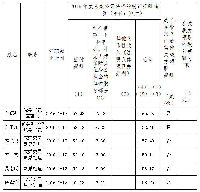 上表披露薪酬為我公司企業負責人2016年度全部應發稅前薪酬。其中,第1項由福建省財政廳核定。