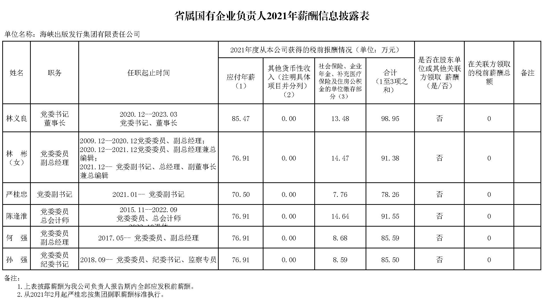 海峽出版發(fā)行集團有限責(zé)任公司負(fù)責(zé)人2021年薪酬信息披露表